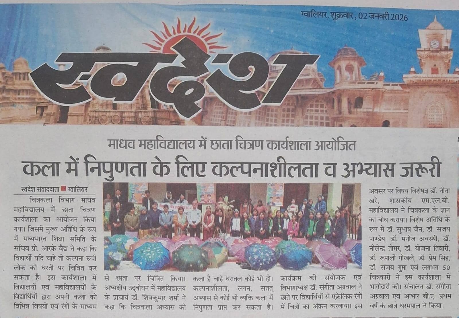 माधव महाविद्यालय के व्यक्तित्व विकास,कौशल विकास एवं चेतना जागरूकता प्रकोष्ठ के द्वारा 25 सितम्बर को पं. दीनदयाल उपाध्याय जी की जयंती के अवसर पर एक दिवसीय कार्यशाला तथा व्याख्यान का आयोजन किया गया 25-09-2025