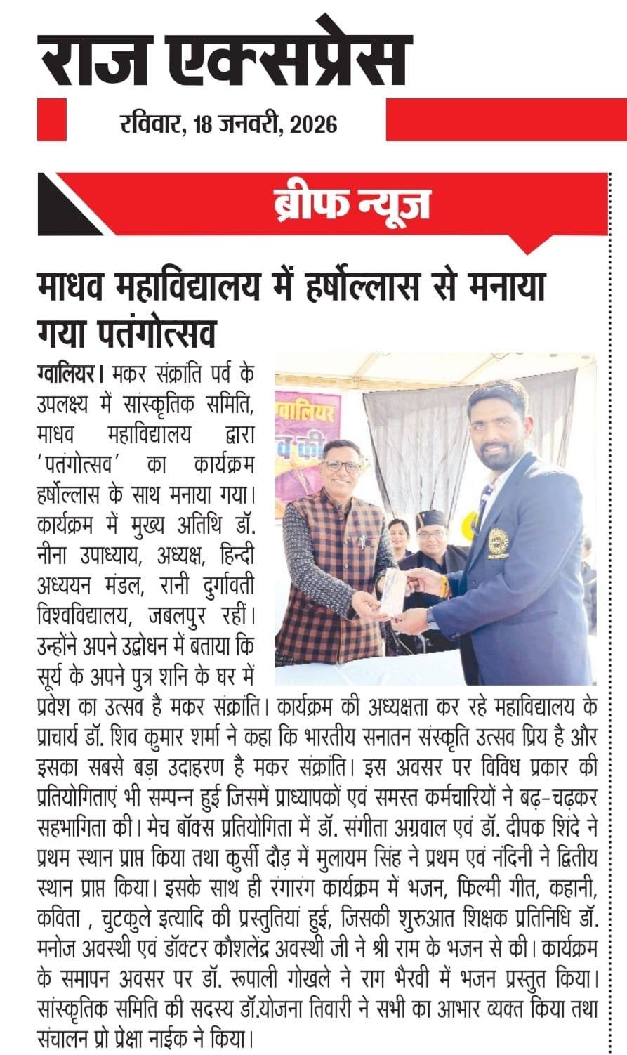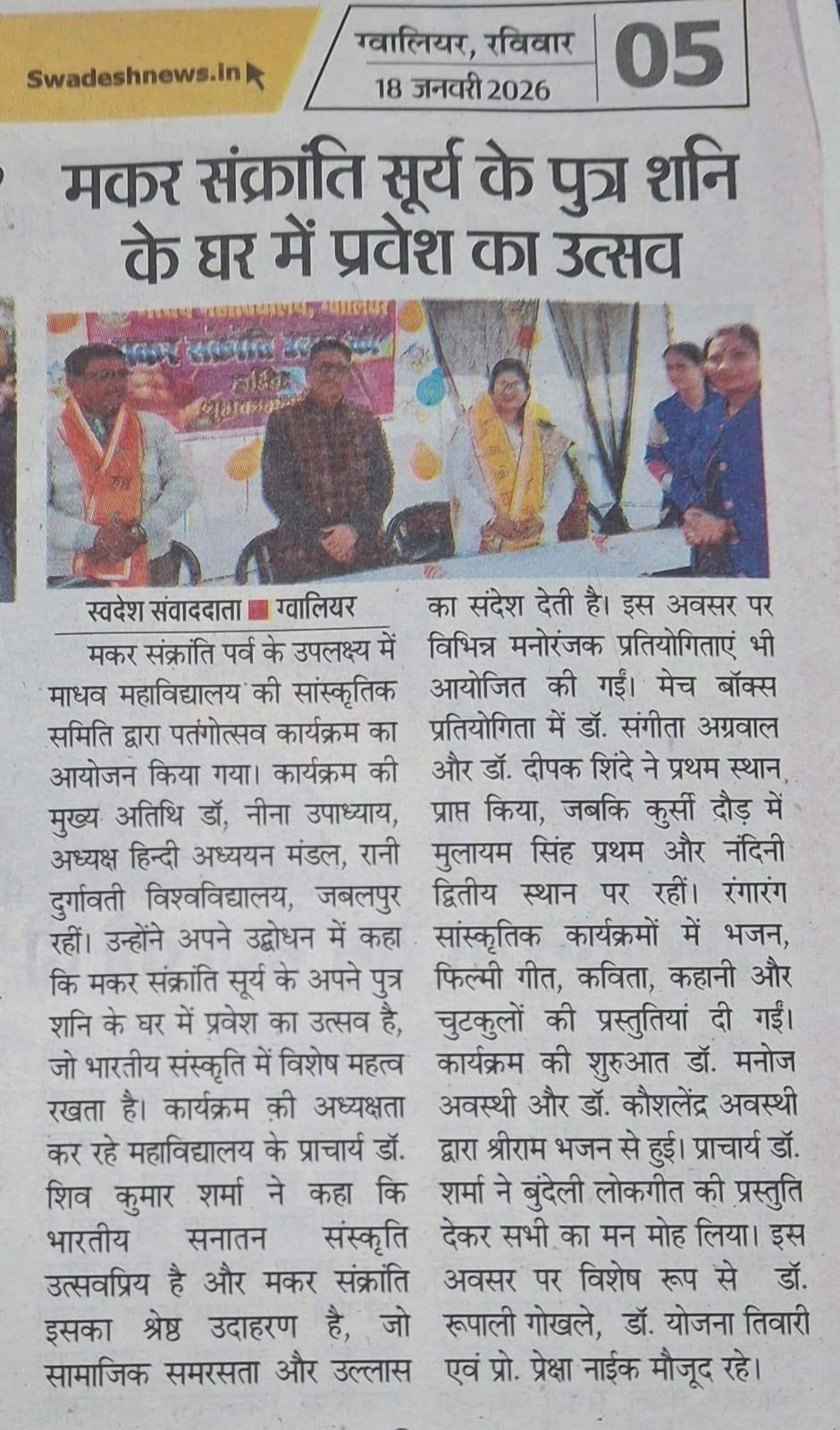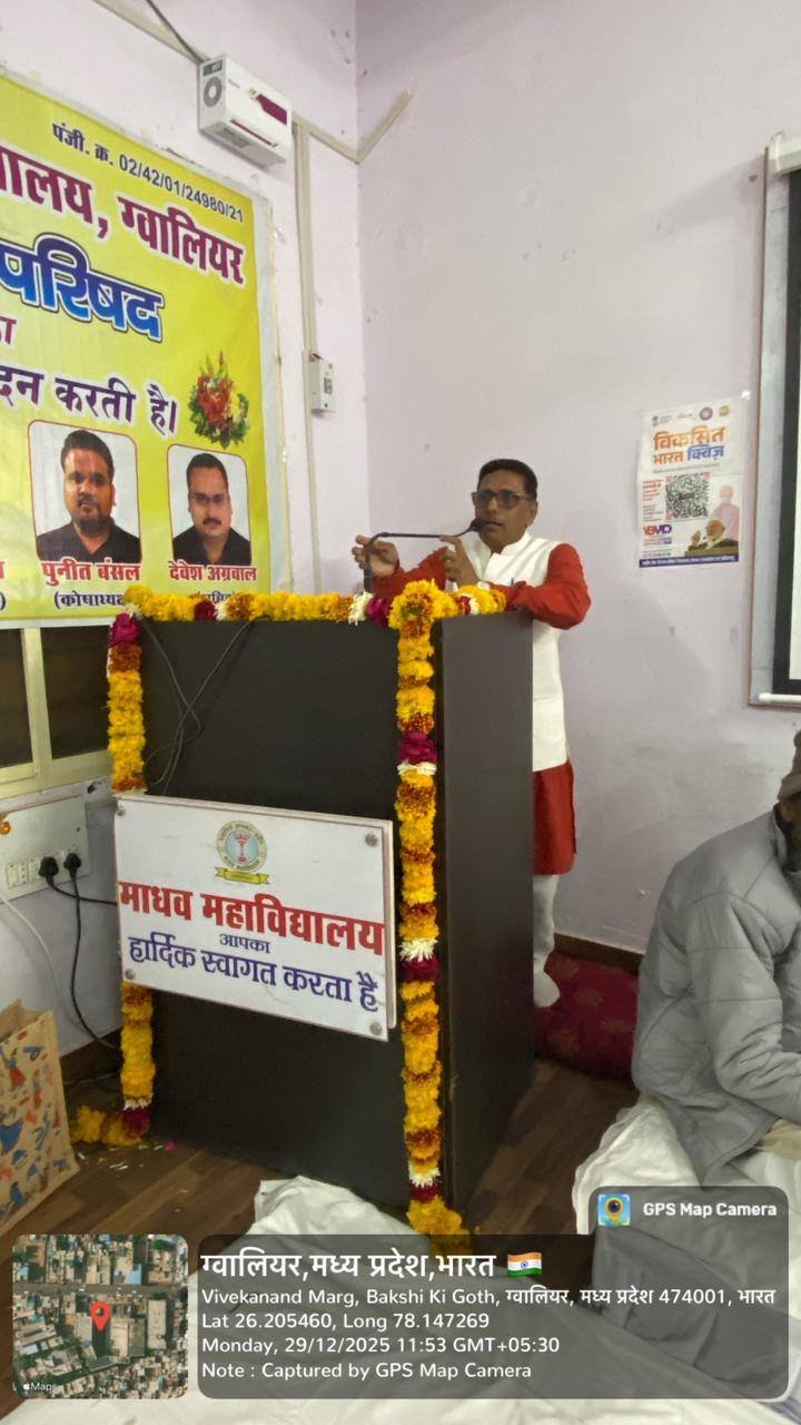 12 जनवरी 2026 को स्वामी विवेकानंद जयंती पर माधव महाविद्यालय में स्वदेशी के लिए दौड़ विषय पर एक व्याख्यान कार्यक्रम आयोजित किया गया 12-01-2026