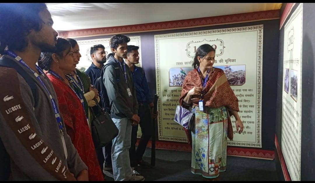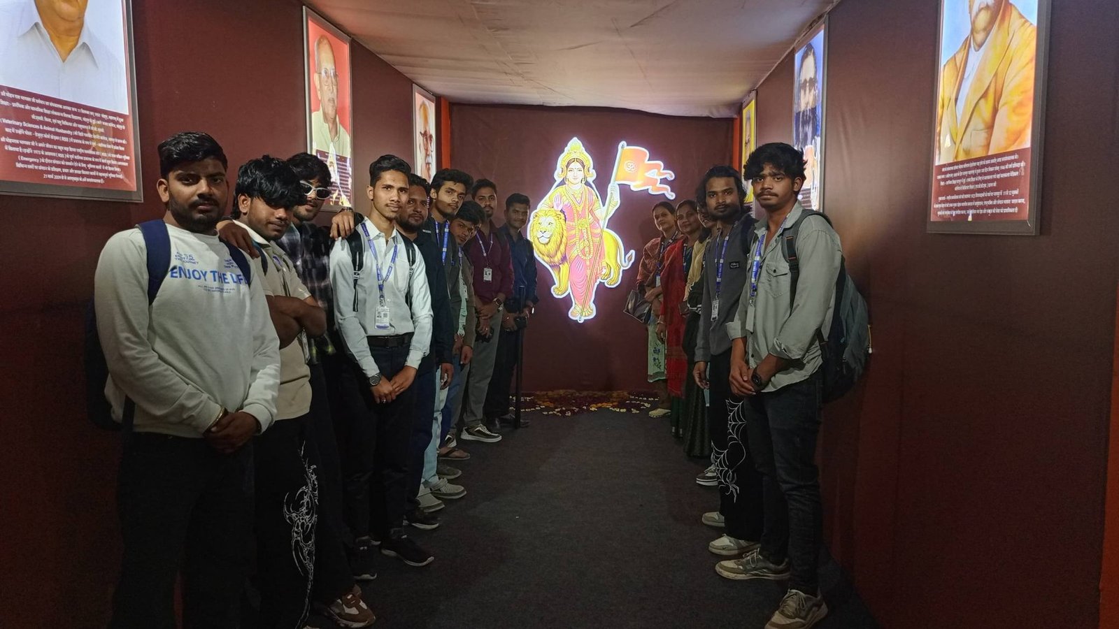 व्यक्तित्व विकास,कौशल विकास एवं चेतना जागरूकता प्रकोष्ठ तथा हिंदी विभाग ने सम्मिलित रूप से 18 फरवरी बुधवार को 15 विद्यार्थियों के एक समूह के साथ ग्वालियर व्यापार मेले की छत्री क्रमांक-1 पर संघ के शताब्दी वर्ष पूर्ण होने के उपलक्ष्य में लगाई गई 'राष्ट्र सर्वो 18-02-2026