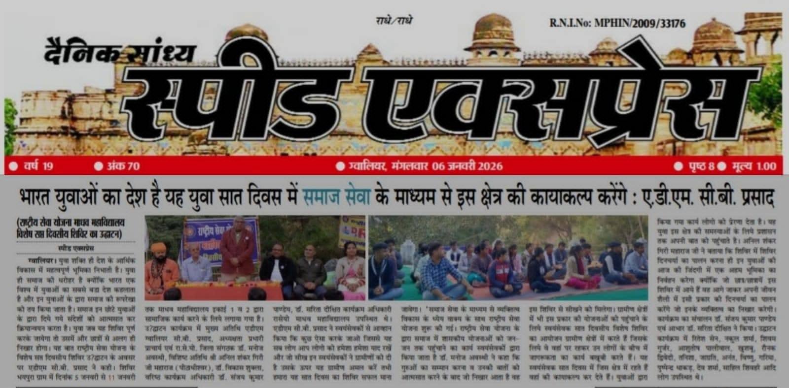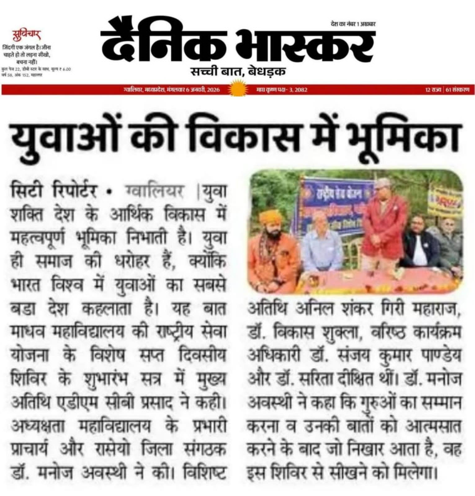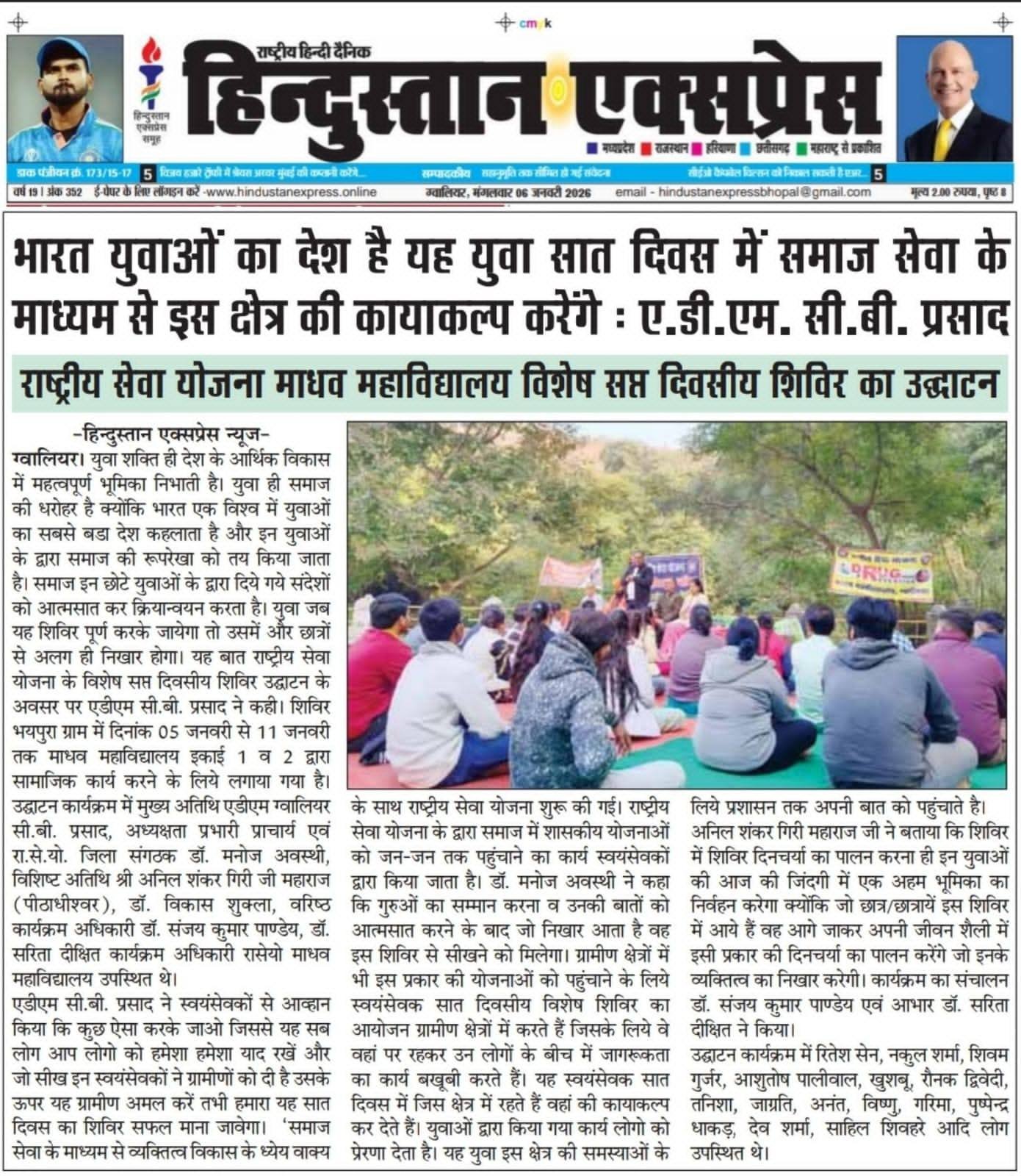राष्ट्रीय सेवा योजना माधव महाविद्यालय विशेष सप्त दिवसीय शिविर का उद्घाटन